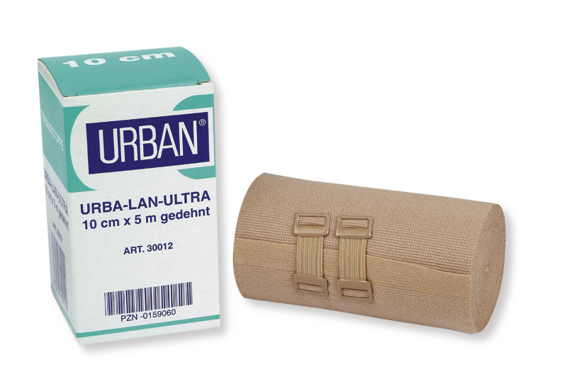 Az Urba-Lan Ultra 40% megnyúlású kompressziós pólyák használatával nyomást gyakorlunk kívülről a vénákra, így azok átmérője csökken, a vénabillentyűk bezáródnak, a vér felfelé áramlik, és az ödéma megszűnik.